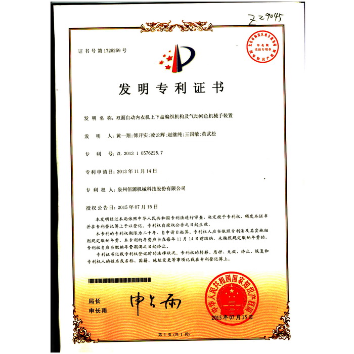 一種雙面自動內衣機上下盤編織結構配氣動間色機械手裝置