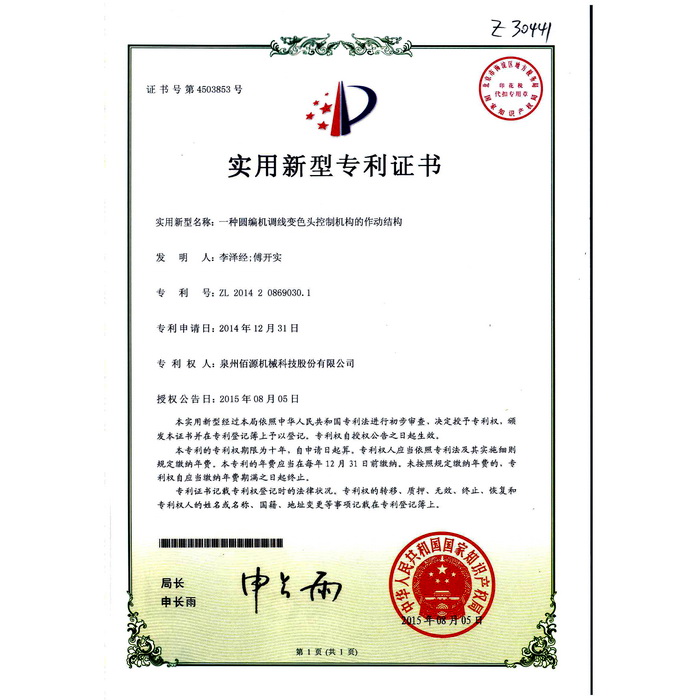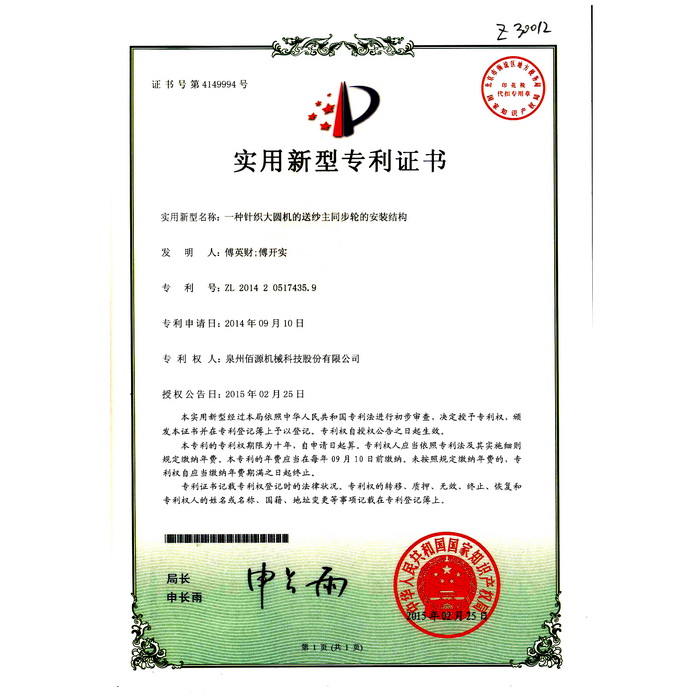 01一種針織大圓機的送紗主同步輪的安裝結構